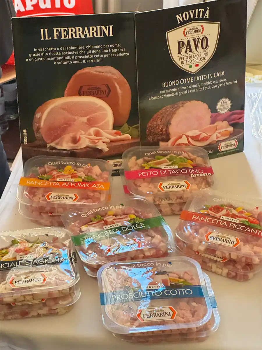 Ferrarini aus Reggio Emilia steht seit 1956 für die klassische italienische Salumeria auf höchstem Niveau. So trägt auch Ferrarini inzwischen ebenfalls das begehrte „Marchio Storico di Interesse Nazionale”. Das Herzstück ist der legendäre „Il Ferrarini”, ein Prosciutto Cotto mit einem einzigartigen Geheimrezept aus aromatischen Kräutern, der seit fast 70 Jahren unverändert produziert wird und Italiens beliebtester gekochter Schinken geblieben ist. Er schmeckt richtig “fluffig” 😉 .