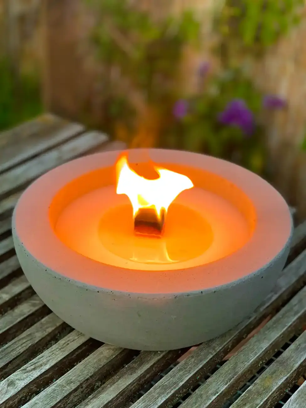 Ja! Wir haben einen wunderbaren Kompromiss gefunden: eine kleinere Feuerschale, aber mit Wachs statt Holz. Die nennt man Flammschalen oder spezifischer Betonschale.