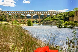 Eines der erstaunlichsten, heute noch zu großen Teilen erhaltenen Bauwerke ist der etwa 400 Jahre später entstandene Aquädukt Pont du Gard, über den Wasser von den Quellen in Uzés bis ins 50 km entfernte Nemausus (Nîmes) geleitet wurde. Dort wurde es in einem großen Wasserreservoir, dem Castellum gespeichert und über 10 Ausgänge mit Bleirohren in die verschiedenen Stadtteile zu öffentlichen Brunnen oder in private Villen geleitet.