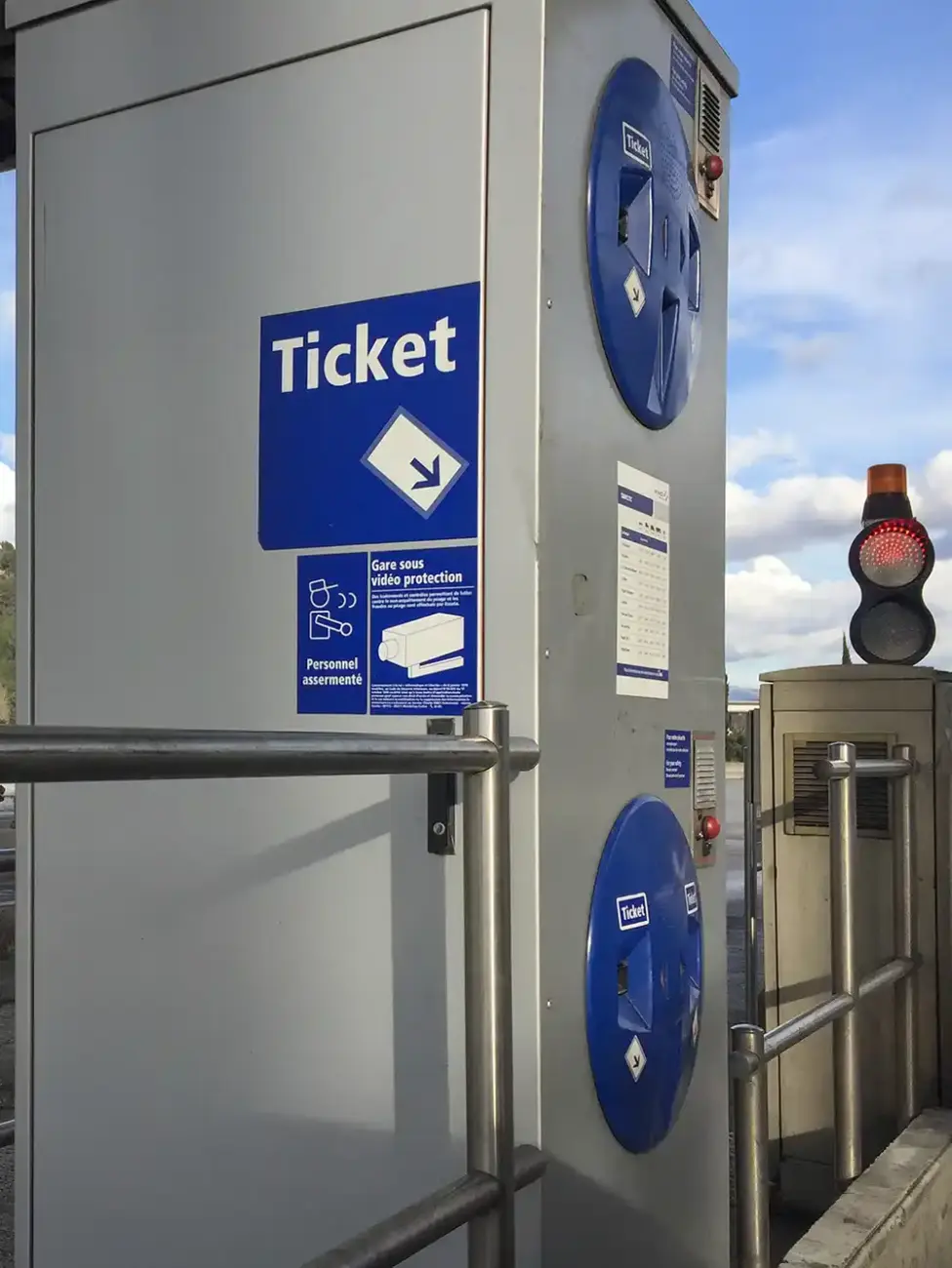 Meist wird es kurz vorher auf Schildern angezeigt. Wenn ihr unsicher seid: Das Ticket wird automatisch produziert, sobald ihr einfahrt – zieht es einfach heraus.