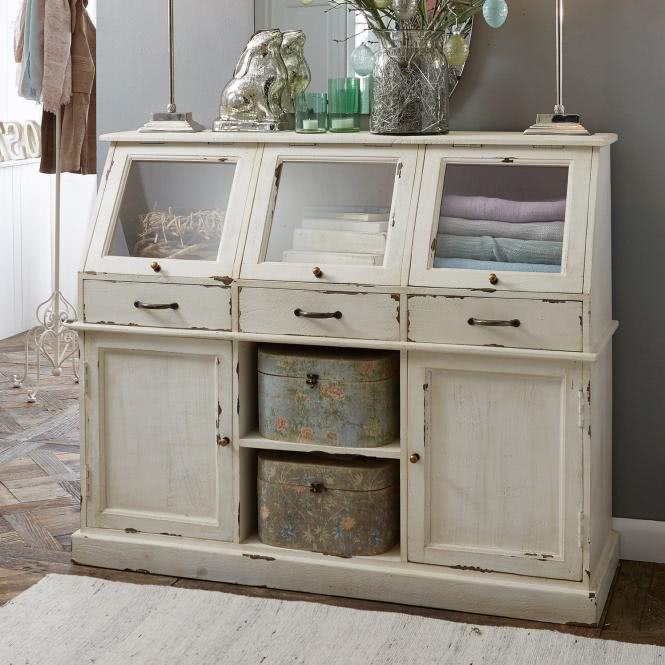 Stöbern Sie einfach auf Flohmärkten nach schönen Einzelstücken oder verleihen Sie Ihren alten oder neu gekauften Holzmöbeln ein etwas weniger perfektes Aussehen, indem Sie sie an einigen Stellen abschleifen oder z.B. mit Kreidefarben einen Vintage-Look verleihen. Dazu gibt es inzwischen zahlreiche Bücher und Anleitungen. Wenn Ihnen das zu mühsam ist, können Sie natürlich auch viele Möbelstücke im Shabby Chic-Stil mit Gebrauchsspuren oder Antik-Finish kaufen. Hier eine kleine Auswahl: